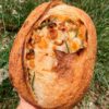 Ciabatta em italiano significa “Chinelo” remete ao formado dele. Pão super leve, bem aerado e macio, ideal para lanches e sanduíches. Nesta versão com azeitonas verdades adicionadas na massa! (550gr – aprox. 14x7cm)